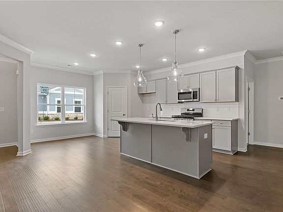 Welcome to Creekwood by Paran Homes, a gated 55+ community in Powder Springs, Cobb County. The Augusta plan at 3908 Shelleydale Dr is an attached ranch villa featuring a 2-car garage with extra storage, a covered front porch, and a screened porch—perfect for morning coffee or relaxing throughout the day. The open and airy floor plan includes upgraded cabinets, stainless steel appliances, laminate flooring, 9’ ceilings with crown molding, a large granite island, and a separate eat-in area. The spacious primary suite offers a tray ceiling, room for an oversized king bed, and ample furniture space. The primary bath features a stepless tiled shower with bench, walk-in closet, linen closet, private water closet, and dual vanities. Two secondary bedrooms on the opposite side of the home share a full bath with gentleman’s-height vanity and tub/shower combo. Conveniently located near Publix, Home Depot, pharmacies, restaurants, and the Silver Comet Trail. Builder incentives available with preferred lender. Ready to close!