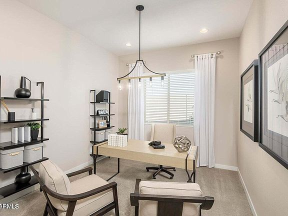 PHOTOS ARE OF MODEL HOME! Below Market Financing Available. This impressive single-story home features a 3-car tandem garage, ideal for car enthusiasts and extra storage. Inside, an open design combines the kitchen, dining and Great Room. Access to a den and covered patio offer additional living opportunities, while the private owner's suite is a tranquil spot to relax. Three additional bedrooms sit near the entry.This home also has Super luxury features such as Quartz counter tops , Sonoma Maple Linen (White) cabinets, and upgraded 7 x 22 plank tile flooring. A copy of the public report is available on the Arizona Department of Real Estate's website.