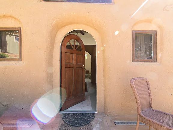 Cozy fireplaceSerene garden viewsCharming adobe style homeLarge windowsWood stoveCustom finishesConvenient parking