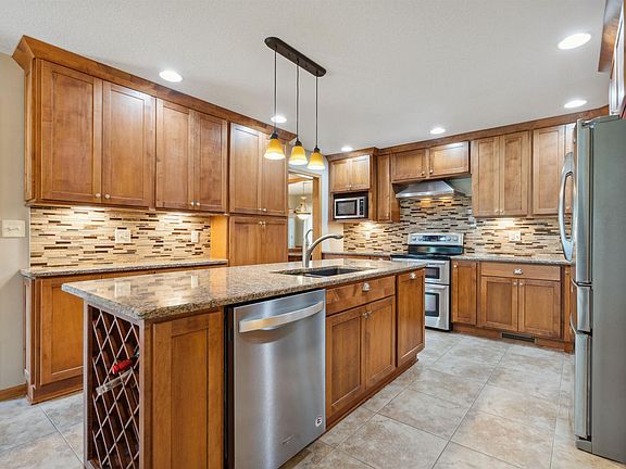 A fantastic opportunity in the Cedar Falls Briarwood Addition! As soon as you walk into the foyer you are welcomed by a spacious living room with vaulted ceilings, a brick fireplace, and a separate formal dining room. The amazing kitchen includes an appealing tile floor, stainless appliances, and a large island that is perfect for entertaining. Open to the kitchen is a second dining area and an extra family room or office space. You will love the spacious main floor primary bedroom and ensuite, boasting a walk-in closet, whirlpool tub, and a sliding glass shower. Finishing off the main floor are three additional bedrooms, office space, and a convenient laundry room. The lower level offers a large living room, adjoining to a fun entertaining space complete with its own bar area. You'll also find a workout room, bedroom with a double closet, and a huge full bathroom that doubles as an additional laundry room. Exterior amenities include an attached, three-stall garage, back patio, and storage shed. Don’t wait any longer on this awesome home!