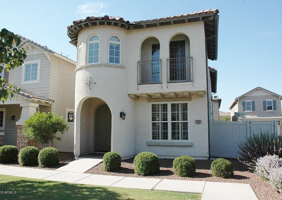 Popular corner lot home with parking area just to the east of the home. Arched front door, wood floors & travertine downstairs including powder room. Home features granite counter tops, Kitchen Island with under counter seating for stools. Stainless Steel appliances and kitchen sink. Upstairs has carpet in the loft area and all 3 bedrooms. Master bathroom and 2nd bathroom has travertine on floors and counter tops. Side patio area downstairs for your BBQ area. Cooley Station has 10 acres of parks with tot play area, sport courts and tree lined streets. The community features three (3) pools. The HOA maintains the community commons areas plus the frontyard of the homes. This community has been approved for FHA, VA and Conventional financing. Lovely home!