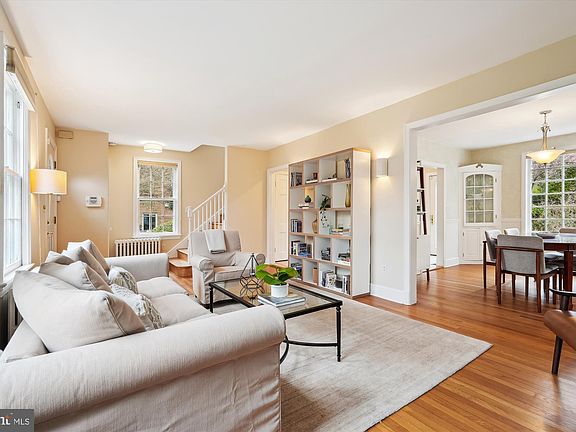 With its abundant character intact, this timeless Chevy Chase View colonial offers an idyllic setting for living, entertaining at home, and four seasons of outdoor enjoyment. Set on an absolutely stunning three-quarter-acre lot, the home is brimming with classic details blended with modern amenities. Sunlight streams through the primary spaces, creating a warm, inviting ambiance. The living room is finished with a gas fireplace and opens to a sunroom/study/flex space and to the dining room. With a nod to its 1920’s craftsmanship, the dining room is flanked by a pair of built-in corner cabinets with glass doors and a large picture window overlooking the lovely backyard and gardens. Step into the renovated kitchen with Dacor appliances, a discreetly tucked away pantry, white cabinets, and open shelving. The kitchen is also filled with natural light and opens to a deck and the backyard. The upper level includes a large recently updated full bath and linen closet, and a bedroom with an adjoining half bath. Another bedroom opens to a level rooftop that could be a perfect spot to add a master bath and closet, or with railings to craft an idyllic outdoor private space. The third bedroom/home office could easily be adapted as a nursery and offers stairs to the finished attic level. Skylights and lush neutral carpeting make this a fabulous bedroom, playroom, or artist’s studio! The partially finished, walk-out lower level includes another half-bath, the laundry room and storage and utility space. Absolutely stunning, the fenced rear grounds extend beyond a brick-paved patio and offer the most spectacular backdrop for the gardener, a household with children, a pool, or a home expansion. The possibilities are endless. Located in the heart of Chevy Chase View and surrounded by extraordinary custom homes on generous landscaped lots, this residence is only moments to Kensington’s many attractions. It has easy access to Bethesda, parks, and bike trails into Rock Creek, commuting corridors and excellent public and private schools. The best of classic architecture, modern livability, and a gorgeous setting…. all wrapped into one wonderful home!