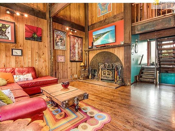 This unique home, originally built & owned by an architect has a very contemporary design that brings to mind a touch of âœColorado Rusticâ setting where it brings the outdoor nature in. Its architecture is dramatic, surprising & fun. Has very private surroundings, on 2 acres, overlooking a small pond, a huge outdoor building with 3rd garage & rec room above ideal for a man cave. Property is gated. Has newer roof, siding, HVAC, all updated & very artistic kitchen with high-end appliances. One of a kind property.