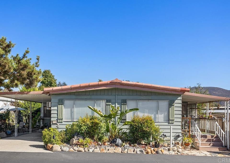 Now On Market With New Permitted Roof. Affordable living in San Diego County! Welcome to Valley Oaks Park in beautiful Fallbrook. 35 minutes to Oceanside Harbor and beaches, 15 minutes to Old Town Temecula and wineries, 10 minute drive into town for shopping and restaurants. Spacious manufactured home with two California rooms for a total of 1,605 sqft. The floor plan is open with lots of natural light. Features include a custom-remodeled modern kitchen and appliances—updated laminate wood plank flooring throughout—expansive living space with a separate family room. The primary bathroom has updated tile flooring and an upgraded shower. Cozy outdoor patio seating and landscape make this home a wonderful place to live. The lot includes a storage shed. Valley Oaks Park is one of the premier manufactured home parks in San Diego County. Well-maintained, quiet, rural setting with surrounding hills and Pala Golf Course adjacent to the park. Amenities also feature a pool, spa, and community fitness and recreational room.