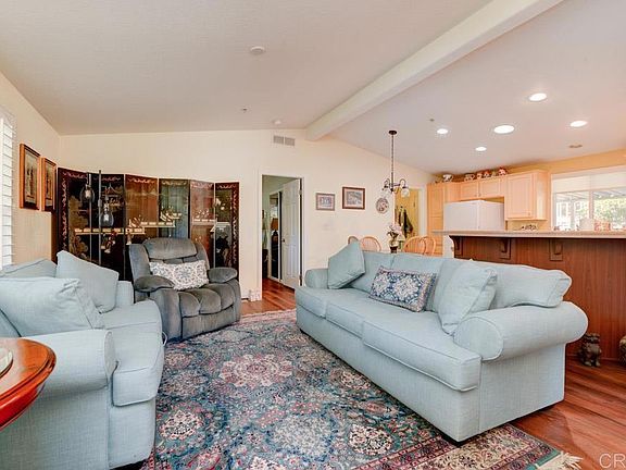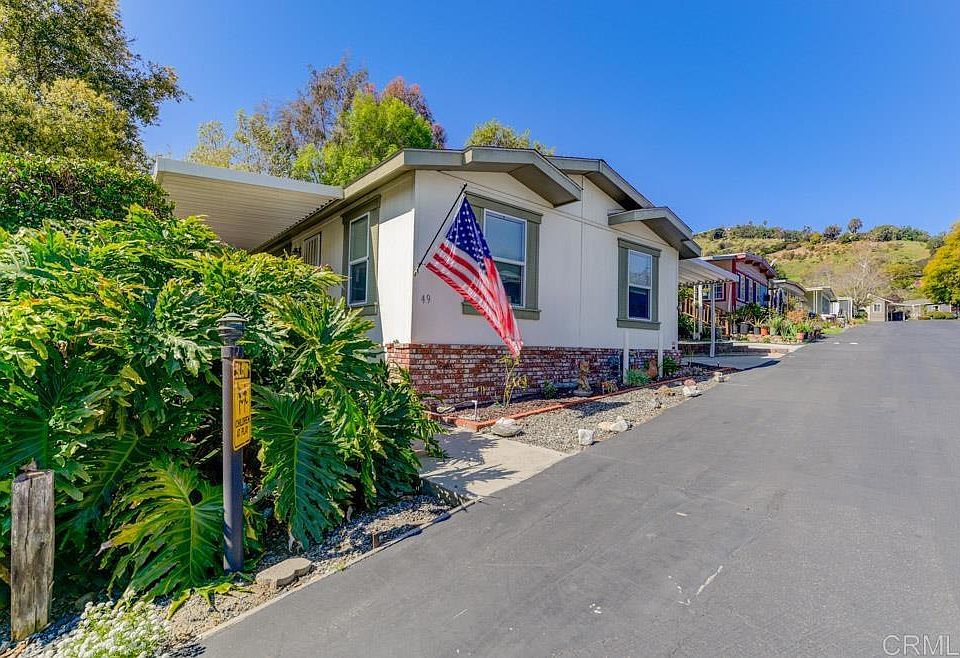 Beautiful Family Manufactured Home Beautiful Fallbrook Family three-bedroom two bath Manufactured Home, located in a five-star family park. This home features a side covered porch along w/ a rear covered porch that runs along a seasonal stream. Interior features shine with solar tubes, recently painted cabinets, newer laminate in the primary bedroom and living room. Kitchen, primary bathroom and utility room features tile Corgilian. Primary glamour bathroom has newer remodeled shower, bathtub along with marble counter tops. Primary bedroom features a sliding glass door that leads to a rear covered porch where you can enjoy the season stream. This family home is a homeowner's dream. Guest bedrooms have ample space for guest or your family. Appliances, washer and dryer are included in the sale of this lovely family dream home. Valley Oaks community features a beautiful club house that has been recently remodeled, a heated pool and neighbors Pala Mesa Country Club. Five minutes from Hwy 15, golfing and just miles away from some of the best restaurants and shopping in Temecula. This home is ready for your family to move in. Call today for a tour and information