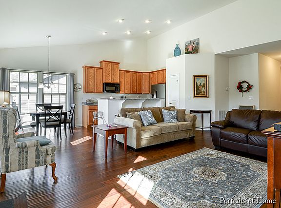 Welcome to this open-concept MAINTENANCE-FREE RANCH in a prime Geneva location! Vaulted FR features stunning hardwood floors and a gas burning fireplace with mantle. Kitchen boasts hardwood floors, abundant cabinetry including pantry and eating area with slider to your patio! Master bedroom features walk-in closet and en suite with dual sinks! Two additional bedrooms, hall bath and closets are located on this main level! Spacious laundry room/mud room with access to two car garage & basement. Expansive basement runs the full foot print of the first floor with a bathroom rough in. HOA takes care of lawn maintenance and snow removal. This location has so much to offer... close to the Geneva commons, public transportation, walking paths, Heritage Prairie Farm and Peck Rd. Farm and so much more! This gem is for you!