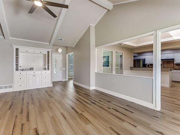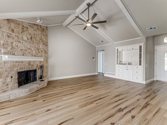 Step inside to soaring vaulted ceilings with exposed beams, a cozy stone fireplace, and built-ins that make the living room the perfect gathering space. The kitchen features granite countertops, modern appliances, and plenty of storage, opening seamlessly to the dining area for easy entertaining.