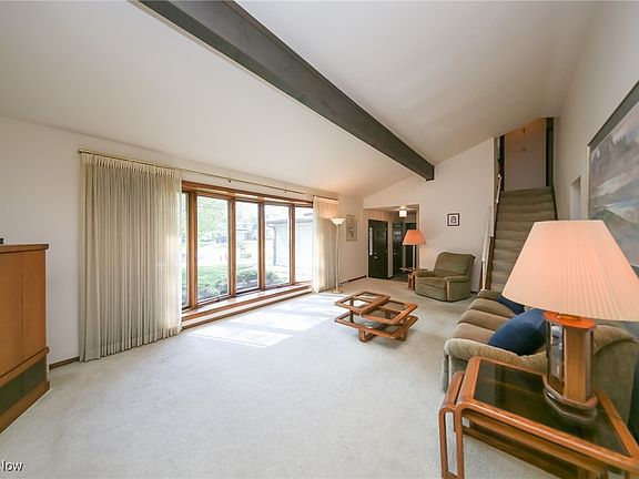 Fabulous home and lot on cul-de-sac. The original owner lovingly cared for this 4-bedroom split-level home with a finished basement. Beamed vaulted ceilings in kitchen, dining, and living rooms—beautiful gas brick fireplace in spacious family room. A large pavilion with a concrete patio is great for entertaining in a spacious pie-shaped lot. Plus, a storage shed in the backyard. Pella Windows. Amana gas furnace and central air conditioning, 7 years old. Hot water tank 6 months. Newer front door. The fourth bedroom has an armoire for a closet. Realist has the square footage, but it seems larger than what is said. The seller is leaving the pull-out couch plus the love seat in the basement. The pool table also stays