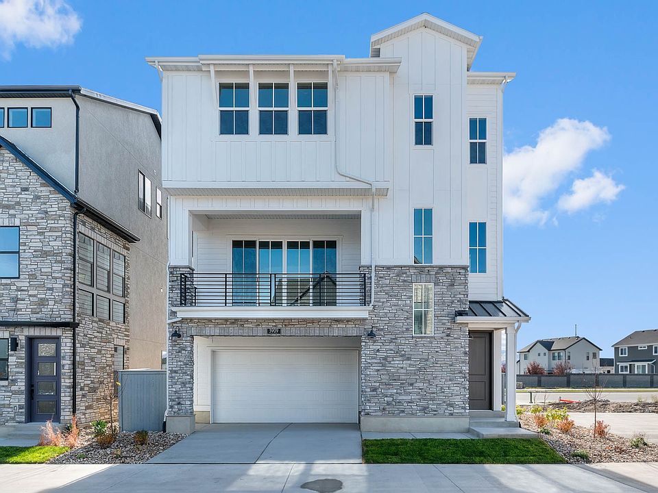 This stunning Whistler Farmhouse style home is located in a sought after Lehi community near schools, parks and Thanksgiving Point amenities. Enjoy beautiful laminate hardwood, tile, and carpet flooring throughout. Also includes Christmas light outlets, tankless water heater, can lighting and energy-efficient options for modern living. The modern kitchen features Cotton Maple cabinets, quartz countertops, tile backsplash and platinum gas appliances. Additional highlights include a gas log fireplace, wood railing at the stairway, 2-tone paint, Craftsman base & casing, and an owner's bathroom with quartz shower surrounds and satin & brushed nickel hardware. Comes fully landscaped that is maintained by the HOA for easy care living!