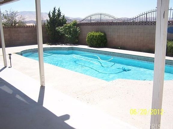 Beautiful Single Story West Palmdale Pool Home For Sale. Home features include 4 spacious bedrooms, 2 bathrooms. Custom paint and pergo wood flooring throughout. Corner lot next to school. Upgraded kitchen w/ granite countertops and upgraded cabinetry. 2 car garage. Covered patio, dog run, and in-ground pool in backyard.