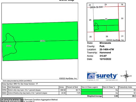 BID NOW ON THIS 320 ACRE PARCEL OF HIGHLY PRODUCTIVE FARMLAND LOCATED NW OF BELTRAMI, MN. THIS LAND CONSISTS OF 313 TILLABLE ACRES WITH A GREAT PRODUCTIVITY RATING. Contact an agent for DETAILS OF THIS LAND AUCTION