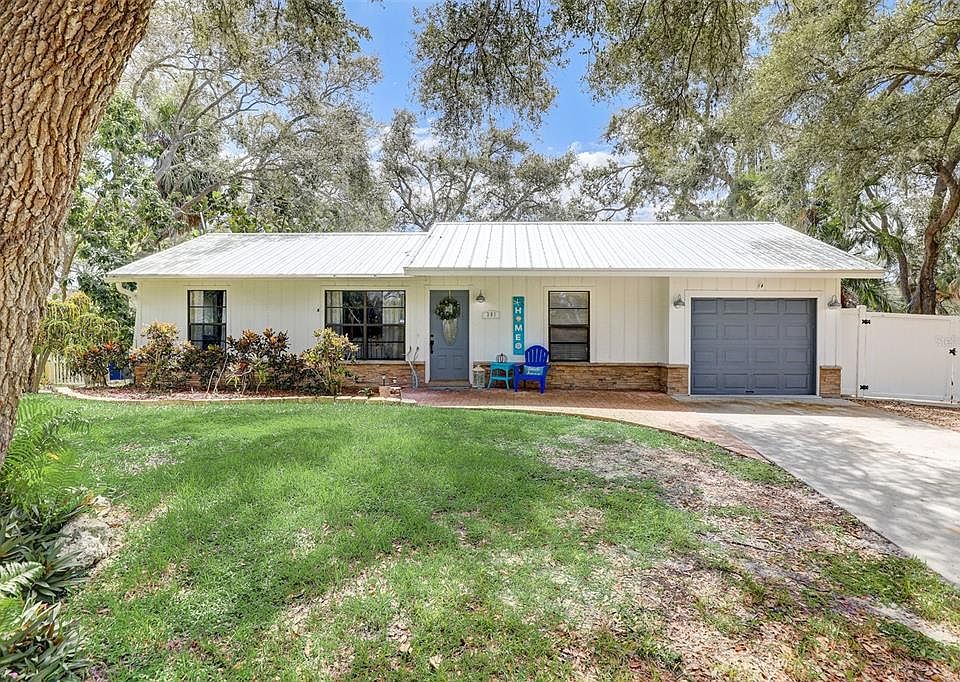 The opportunity to own your piece of paradise is here. Located in highly desirable South Venice just a 1/2 mile from the South Venice Ferry. As you pull into your oversized driveway you are greeted by the coastal inspired design and mature landscaping giving you that home sweet home feeling. This charming two bedroom, two bathroom split floor plan offers two en-suite bathrooms providing privacy to both owners and guests. A custom ship-lap feature wall and new luxury vinyl plank flooring creates a beachy vibe as you make your way into the open concept dining room and kitchen for easy entertaining. Newer stainless steel appliances give the kitchen an updated look. The spacious family room may be used as a formal dining room, office, or additional living area which offers double doors for privacy. The view outside the expansive screened in lanai has a grand picture window leading to your outdoor oasis with a fully fenced in backyard for privacy. To end the day enjoy sunsets sipping your tropical inspired beverages at your private tiki bar. Behind the privacy fence, you will find a large shed and an oversized cement pad to store your BOAT or RV as there is no HOA. Features include NEW METAL ROOF 2023 with transferrable warranty, new AC and duct work, newer stainless-steel appliances and luxury vinyl plank flooring and an indoor laundry room with extra storage. The South Venice Ferry is exclusive to this community by joining the voluntary South Venice Civic Association, which provides access to the ferry to take you to a private beach which includes access to the BOAT and KAYAK LAUNCH. Spend the day searching for sharks’ teeth, boating, kayaking and soaking up the sun at top-rated west coast beaches- Nokomis, Venice and Brohard Beach to name a few. Just a short drive to the South Venice Boat Ramp, historical Downtown Venice, Sarasota Memorial Hospital and Cool Today Park Braves Spring Stadium. Make this your home sweet home or investment property and start living the coastal lifestyle today.