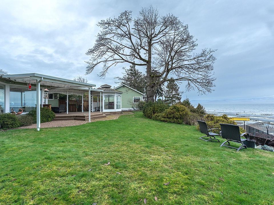 Nestled on a rare .59-acre oceanfront lot, this exceptional property offers breathtaking panoramic views and direct beach access. The main rancher-style home is designed to embrace coastal living, featuring expansive windows that frame the stunning seascape, an open-concept layout, and a spacious deck perfect for enjoying the ever-changing tides. Adding to its uniqueness, a charming carriage home/cottage provides incredible flexibility—ideal for guests, extended family, or an income-generating rental. With its unbeatable waterfront location, ample space, and the tranquility of a quiet seaside street, this is a rare opportunity to own a true Vancouver Island retreat while enjoying the added value of a versatile secondary dwelling.