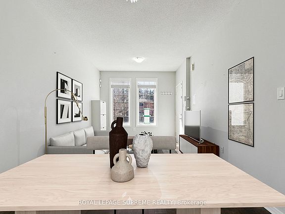 3 Bedroom, 3 bathroom unit in Natures Path! Bright, south facing unit in a family friendly community, filled with natural light and thoughtfully designed for modern living. The open concept main floor features high ceilings, a spacious living and dining area, and a sleek kithcen with a large centre island and plenty of storage. An additional flex space off of the kitchen is perfect for a home office, play room, or a second dining/lounge area, with walkout access to a private patio equipped with a gas bbq hookup and direct access to the parking lot. Convenient 2 piece bathroom on the main level. Downstairs, the primary bedroom includes a private ensuite, plus two more bedrooms and a full 4 piece bath complete the lower level. Steps of TTC, major highways, parks, waterfront trails, and shopping. A solid choice for families looking for comfort, flexibility and a great location.