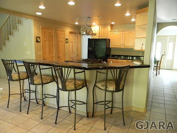 Beautifully appointed home in Cobblestone Ridges with formal living and dining. Kitchen has island, bar, maple cabinets and granite counter tops. French doors in FR allow for access to covered patio extending across back of the home. Tiled main level, in-floor radiant heat and custom paint throughout. Main level master has French doors also opening onto the patio plus built-in drawers and shelving in walk-in closet. Upstairs rec room and deck overlooking back yard. RV parking with clean out and large 2-car garage with shop area.