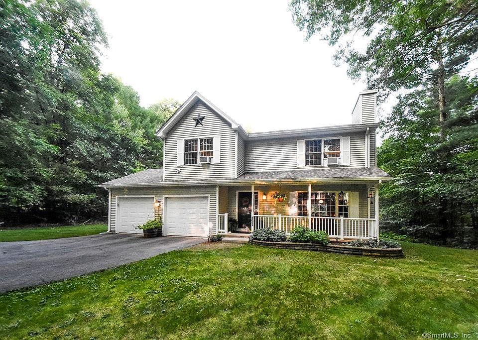 This secluded 3 bedroom, 2.5 bath Colonial is set back from the road on 4.65 acres. Notice the gleaming refinished hardwood floors and the cozy living room featuring a marble fireplace with gas insert. The living room opens up to the dining area for an open floor plan sensibility. The kitchen presents cherry-colored cabinets complimented by stainless steel appliances replaced within the past 5 years. The gas stove is connected to an owned propane tank. The renovated half bath features custom-woodwork shelves above the laundry. Crown molding throughout the 1st floor adds an elevated touch. Upstairs, the hardwood floors continue into all 3 bedrooms. The spacious Primary Suite features 2 walk-in California Closets and a full bathroom with marble flooring and a shower stall. The 2nd full bathroom offers a tub. The 2 additional bedrooms are generously sized. The home is outfitted with Hunter Douglas blinds on all windows. The 2 car garage has space for a workbench with an automatic door opener. The basement provides plenty of storage. Outdoors, enjoy this peaceful, country setting from the front porch or the large back deck that opens up to a yard perfect for entertaining! The yard abuts the woods for ultimate privacy. Indulge in the hot tub and rinse off in the custom-built rinse station. A large detached shed offers additional storage. Conveniently located close to town. Easy access to Route 2 and Route 11 for ease of commuting. This well-loved home is truly a gem!