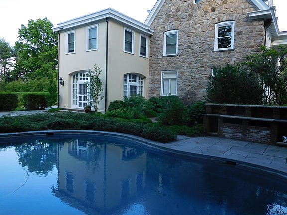 Misty Acres: A Sublime Bernardsville Mountain Estate Designed by George B. Post & Sons in 1899, Misty Acres is a landmark estate on the Bernardsville Mountain. Post's noted architectural firm incorporated many of their signature features into the home design such as a striking two-story columned façade, timeless details rooted in classicism and a railed rooftop Widow's Walk. This impressive example of the Colonial Revival style is surrounded by over six acres of property containing gardens designed by landscape architect Ellen Biddle Shipman in the 1920s, a heated free-form pool, a caretaker's cottage now serving as a gym, and a carriage house featuring a multi-vehicle garage, two horse stalls and a two-bedroom, two bath apartment. The main house presents up to six bedrooms, six and a half baths and an attached two-car garage. Extensively improved through the years, restoration work maintained the architectural integrity as seen in the stone work, ornate woodwork, a graceful three-story center hall staircase winding through the center of the home and numerous built-in window seats, bookcases and cabinetry. Newer additions such as a chef's kitchen with adjacent wine nook, butler's pantry, newer windows, remodeled laundry room, mud room and powder room and backup generator are among the modern amenities. A stone-pillared entrance frames the home's artful symmetry which is softened by a circular drive and rounded boxwoods. Introducing Misty Acres' layout is a central hall which contains the railed staircase serving all three levels. Flanking the entrance are billiards and dining rooms, both exquisitely designed with fireplaces, quarter-sawn hardwood floors, deep crown moldings and charming window seats. The billiards room steps down to a garden room filled with natural light from four sets of oversized glass doors and arched windows. This bright, airy space opens to the pool, rear bluestone terraces and exquisite gardens. Set apart from the public spaces is a handsome wood-paneled library featuring a fireplace, built-in bookcases and gleaming wood floors. An expansive chef's kitchen presents ivory-toned Christopher Peacock cabinetry, a center island with breakfast bar seating and prep sink and pastry station; high-end appliances including three dishwashers; an ornate tile backsplash; granite and marble counter tops; a window-walled dining area and a cabinet-lined wine nook with seating, a fourth dishwasher, wine cooler, under-counter refrigerator and icemaker. The second and third floors offer six bedrooms and six bathrooms serving them. A master bedroom retreat is arranged with a separate sitting room, spacious bedroom, remodeled spa-inspired marble bathroom (2016. Two additional bedroom suites have a full bath and sitting area, and another is an en-suite bedroom. Accessed by a separate drive are the completely remodeled two bedroom, two bath carriage house with two horse stalls and attached multi-vehicle garage. The approximately 1,560-square-foot carriage house has a covered front porch two-story living quarters with a beautiful center island kitchen, open to the living room and dining area, and full bath on the first level. On the second level are the two bedrooms, a second full bathroom, media/family room and laundry. The heated and air conditioned caretaker's cottage has been transformed into a fitness facility with workout room, kitchen and full bath. This is accessed, too, by the separate drive. Spectacular grounds feature stone walls, a heated pool surrounded by a blue-stone terrace, a formal garden lined in boxwoods leading to a pergola and reflecting pool, a shady tree-lined allée with random-size stone path, an orchard and pea-gravel walkways meandering through the inspirational setting. Misty Acres is close to fine public and private schools, restaurants, shopping and golf courses. Its central Somerset County location is approximately 45 minutes from Newark Liberty International Airport and about an hour from Manhattan by car or Midtown Direct train service from downtown Bernardsville.