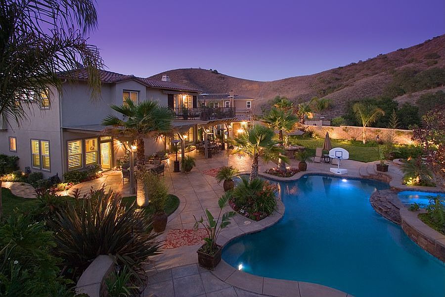 This Beautifully Appointed Estate Features Five Large Bedrooms w/ 6 Baths, including two Bedrooms Downstairs, & an Expansive Master Suite with a Spacious Retreat & Balcony overlooking Your Very Own Five Star Resort! The Gourmet Chef's Kitchen overlooks the CLCA Award Winning Backyard, which includes a Stunning Pool, with Slide, Spa, Built-in Barbeque & Pool Cabana! This Stunning Semi Custom Estate has all of the Extensive Premium Upgrades throughout including Plantation Shutters, Custom Crown Moulding, Custom Faux Paint,State of the Art Landscape Lighting, Custom Carriage Garage Doors and Race Deck Flooring. This Homeowner has spared no expense and NO detail has been missed. No Need to take a Vacation upon Moving into this Gorgeous Home! This Beyond Model Perfect Home Truly Has it ALL!!