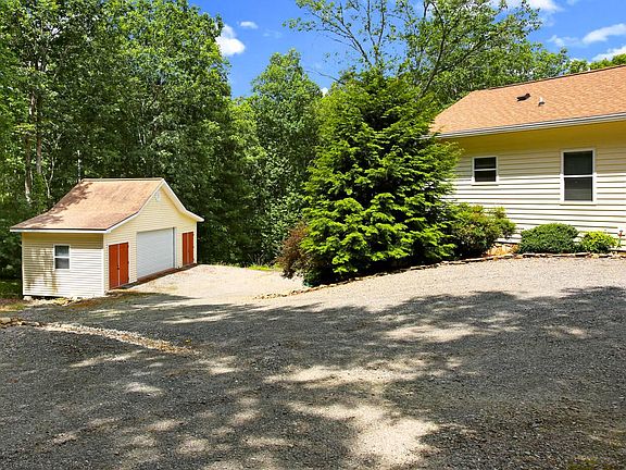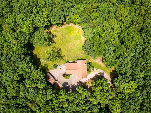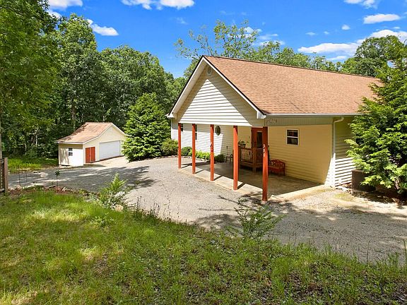 Like new home on 6 1/2 unrestricted acres with shop/storage building and small creek at rear of property line. Home features flowing open floor plan with soaring cathedral ceilings. Large kitchen with hickory cabinets. Master Bedroom and laundry on main floor. Screened porch off living room with stone fireplace. Game room in basement has stone fireplace with wood burning insert. Covered deck off game room has hot tub. Nice oversized garage and fenced area for puppies.