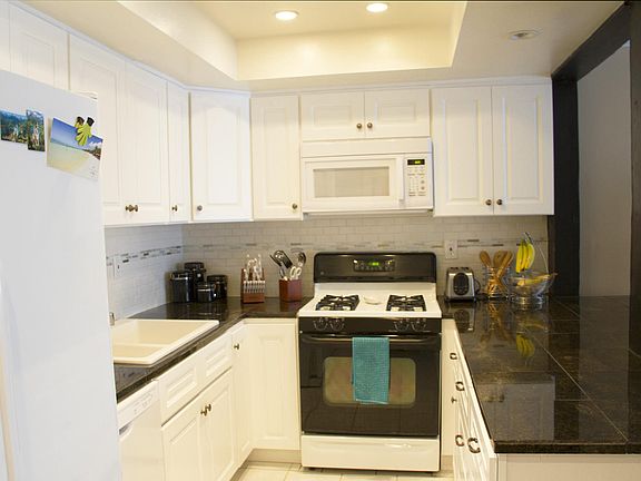 Beautifully remodeled two-level 3 bedroom 1.5 bath unit with large private patio. Remodeled cooks' kitchen with breakfast bar and built-in dining nook. New extra kitchen cabinets added for tons of pantry space. Downstairs powder room. Bedrooms with views. Wainscoting. In-unit laundry room and large attached garage. Quiet association with pool.