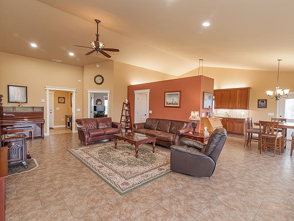 Well maintained 3 bedroom 2.5 bath home north of Pasco on 5 acres. Features a shop with a lean-to for animals which opens to the pasture area. Underground sprinklers in the yard area as well as the pasture. Home is open and spacious with a 16x34 bonus/media room that is up one level and has a projector, screen and surround sound. Bonus room has plenty of room for a pool table or ping pong table. Sink with cabinet and small fridge in bonus room. Whole house audio that allows audio in the great room, library/den, and the three bedrooms. Audio is multi-channel with individual room controllers and speakers embedded in the ceiling of each bedroom and in the wall of the great room. Flooring is tile and hardwood with carpet in the upper bonus/media room. Laundry room has utility sink and cabinets for extra storage. The master shower (3x7) and shower in the main bath are both tiled. Jetted tub in master. All windows are Pella brand with built-in blinds embedded between the glass for a very clean look. Counter tops are granite. Garage is finished and painted. Vaulted ceiling in kitchen and great room for a very open feel. Large windows allow for natural light and add to the openness of the home. Double pantry in kitchen and a 3x7 storage room for additional food storage or other storage off the great room. Home is built to a maximum for energy efficiency, with concrete walls, radiant heat in the floor, maximum insulation and other features. There is also an observatory (the roof rolls forward for star gazing) in the yard that could continue as such or be used as a playhouse or craft space. (It has a heat and cooling source.) This is a great property and you will notice the attention to deal. Come and see today.
