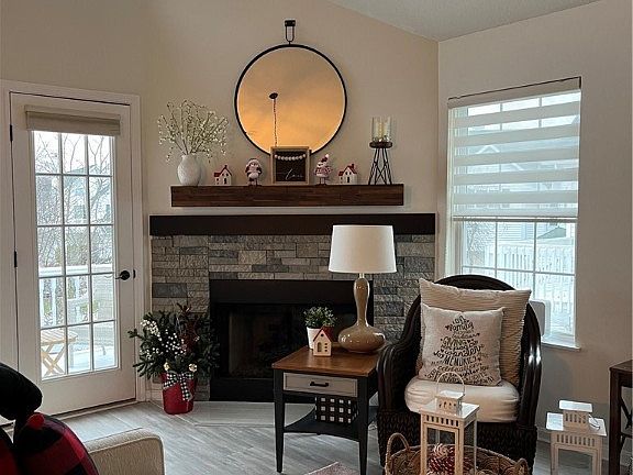 - Description: Cathedral ceiling, French doors to deck, New mantle on fireplace,Flooring: Luxury Vinyl Tile