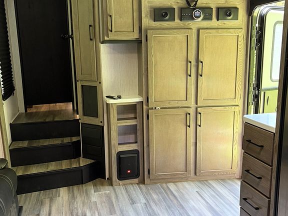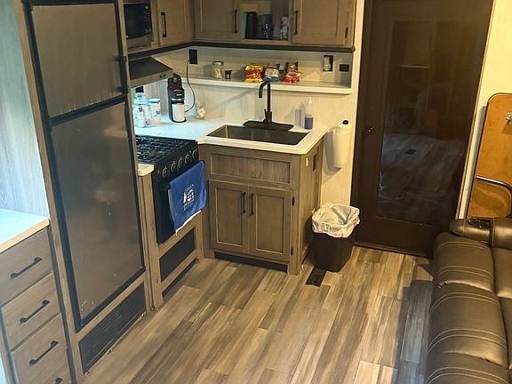 This rv is 2 years old and has everything you need as far as a kitchen with plenty of cabinets for storage, a refrigerator, stove, and microwave. Relax on the reclining leather sofa to watch all of your favorite shows on the smart tv. Tired? Take a nap in the master bedroom on the super cozy king bed. The master bedroom also has a closet and plenty of storage. The shower in the bathroom is large and spacious. There's also a garage which you could use as storage or a second bedroom. It does include a queen bed.