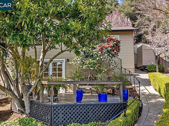 Welcome to this charming gem tucked away in the serene hills of Martinez. This unique home features a main residence with 2 bedrooms and 1 bathroom on the upper level, complimented by a studio with bathroom and kitchen on the lower level. Enjoy vintage-inspired design and a beautiful back patio overlooking the terraced garden and open hillside, providing a peaceful retreat. The updated kitchen and bathrooms offer modern convenience while maintaining the home's timeless charm. Abundant natural light creates a warm and inviting atmosphere, with seamless indoor-outdoor living connecting the welcoming backyard to the kitchen and bedrooms. Studio presents versatile opportunities, from a guest suite to an inspiring home office or income rental, or convert back to 3 bedrooms. Thoughtfully maintained for many years, home boasts special features including central HVAC, dual pane windows, and a tankless water heater. Conveniently located near grocery, retail, and trails with quick access to Hwy4. Downtown Martinez offers a vibrant energy with pubs, breweries, unique restaurants, music venues, farmers market & more. Whether you're captivated by the charm, seek an income opportunity, or drawn to the peaceful surroundings, this home offers a rare combination of character and functionality.