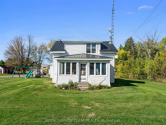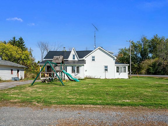 Why rent when you can buy! Come and see this 3 bedroom home with a 2 car detached garage! Sitting on a 0.85 Acre lot with a creek running through it, this home has had some great updates over the years, including siding and roof, the septic system, and furnace/hot water tank! Enjoy a spacious eat-in kitchen with woodstove, two living spaces on the main level and two enclosed porches, one in front and one which acts as a foyer. Upstairs you will find a very large primary bedroom with walk-in closet, 2 smaller bedrooms and the full bathroom. The detached garage is perfect for extra storage or all your toys, plus there is an older storage shed as well. Located 10 minutes south of Winchester and 10 minutes north of the 401 (Morrisburg). Make this home your own personal slice of country paradise!