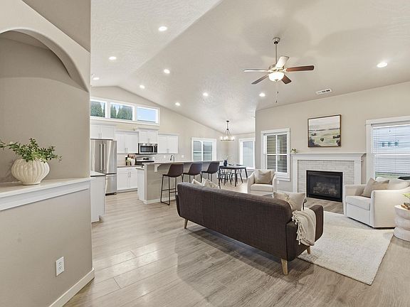 This one story, 1805 square foot home is designed for those who love to live, gather, or even entertain. Step into an expansive open-concept living space highlighted by soaring vaulted ceilings creating a bright and inviting atmosphere. The chef-inspired kitchen features abundant counter space, a spacious serving and dining bar, and additional storage for convenience and efficiency. The spacious dining area flows effortlessly to a covered patio overlooking the expansive backyard, perfect for relaxed evenings or hosting outdoor gatherings. A welcoming den offers additional space to unwind—or makes for a quiet office space. Retreat to the private primary suite also set beneath vaulted ceilings, complete with a luxury bath with a tile shower and a large walk-in closet that offers both comfort and timeless style.
