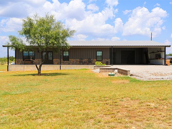 Located just a few miles from Lake Brownwood and only about 15 minutes from Brownwood, this beautiful 3-bedroom, 2.5-bath home sits on 1 acre of land. Built in 2021, the home offers an open-concept layout, combining the kitchen and living areas into a spacious and inviting space. The kitchen features a large island and all-electric appliances, with the exception of the refrigerator which may be negotiable.You'll find a spacious pantry and laundry room with hookups for added convenience. Enjoy breathtaking views from both the front and back covered porches, which extend along each side of the home.The primary bedroom is large enough to comfortably fit a king-size bed, and it includes a walk-in closet. The adjoining bathroom boasts a double vanity and a generous walk-in shower.In addition to the home’s luxurious interior, the property also includes an attached shop, providing plenty of space for all your workshop needs, complete with a half bath. With 2 RV hookups, it's the perfect space for family gatherings and guests.Nearby, enjoy fantastic amenities such as the Hide Out Golf Club & Resort, Wild Duck Marina, and the Lakeside Bar & Grill—all while embracing the tranquility of lakeside living. The home also has insolation in the ceilings & external walls and framed with 2X6 centers.Schedule your showing today to experience this incredible home!