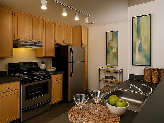 Choose from thoughtfully designed studio, one-, two-, or three-bedroom floor plans, all featuring stainless steel appliances, track lighting, ceramic tile bathrooms, in-unit washer and dryer, and brushed nickel finishes.