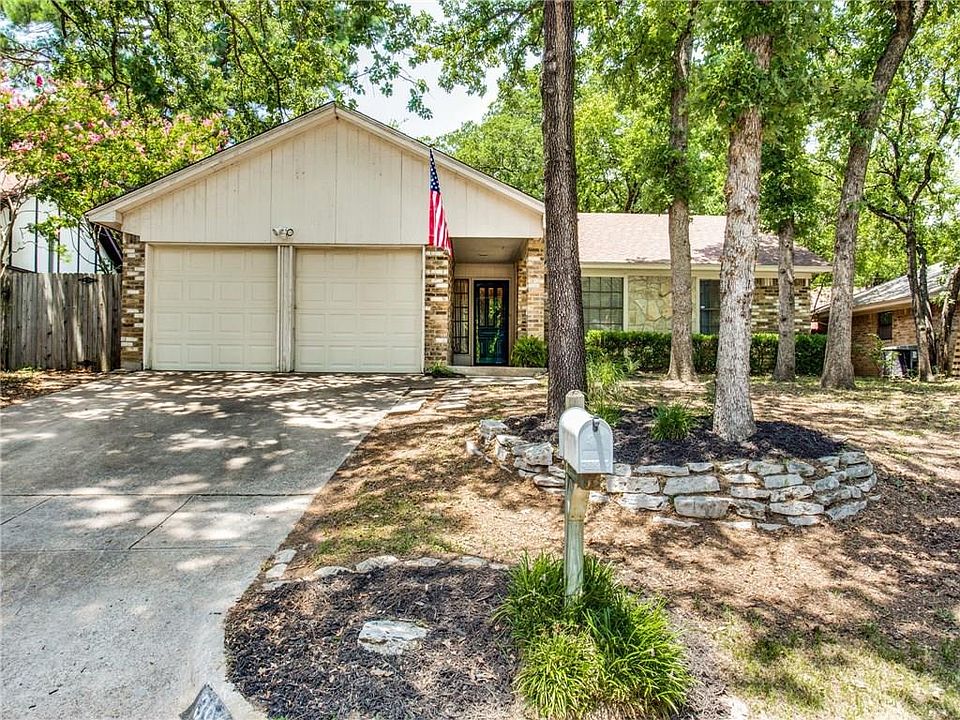 Your home awaits! Located in a wonderful, established neighborhood, this 3BR-2BA home boasts a lovely treed yard and extended front porch to greet your guests. Entertaining is easy in your oversized Living rm with built-ins, laminate flooring and fireplace. The light and bright kitchen has updated appliances including a double oven, painted cabinets, tile countertops and backsplash. The breakfast area has a great bay window! The dining room has a custom stained glass feature and a door leading out onto the covered back patio. The MBR is a great size with an en suite bathroom, dual sinks and walk-in closet. Secondary bedrooms both have nice size closets as well. The garage has an extended area with workbench.