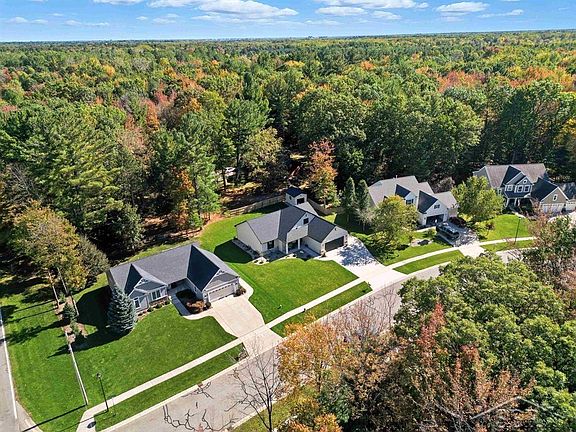 PRISTINE PERFECTION ON PLUMTREE! Built in 2023 by Cobblestone Homes, this 1,817 sq. ft. 3-bedroom, 2.5-bath ranch blends modern design with exceptional craftsmanship. Step inside to a bright, open-concept layout with luxury vinyl plank flooring and a soft neutral palette. The stunning kitchen features quartz counters, beautiful cabinetry, and tile backsplash, flowing seamlessly into the dining and living area centered around a cozy gas fireplace—perfect for relaxing or entertaining. Sliding doors open to a backyard patio, extending your living space outdoors. Retreat to the spacious primary suite with a large walk-in closet and a gorgeous ensuite bath featuring dual vanities and a walk-in tile shower. Enjoy premium features including a heated 2.5-car attached garage, whole-home air exchange, hardwired internet in every room, and a Dribot sump system for added peace of mind. The full basement boasts tall ceilings and endless potential, while the new storage barn with electricity offers extra room for lawn gear or hobbies. This home is a perfect blend of comfort, quality, and style—don’t miss your chance to make it yours!