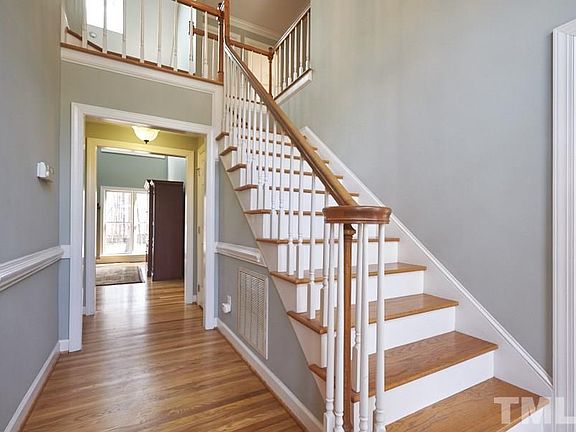 Delightful transitional offers best of traditional design with airy openness of a contemporary. Gourmet kitchen opens up to family room, flagstone patio and Duke Forest beyond. Master bedroom offers beautifully renovated spa-bath, walk-in cedar closet and bonus exercise room. Fresh paint, new roof, skylights, crown molding wainscot, tankless water heater, large windows and hardwood floors throughout. Enormous walk-up attic provides excellent storage or easy renovation. Community well run by Aqua.