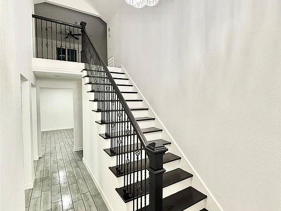 Every detail in this home has been upgraded! Features include a chef’s kitchen with quartz countertops, new cabinets, stainless appliances, and a large island. An elegant red oak wood staircase with iron spindles and a chandelier centerpiece creates a dramatic entry. Bathrooms are fully remodeled with modern finishes. Durable wood-look tile flows throughout, with a tiled garage, brand new doors, and all new windows. Home offers 3 spacious bedrooms plus an additional cozy bonus room and a game room, perfect for family or entertaining. Exterior boasts fresh paint, black trim & garage doors, new landscaping, and an impressive exterior lighting package for stunning curb appeal. Truly move-in ready with every upgrade complete!