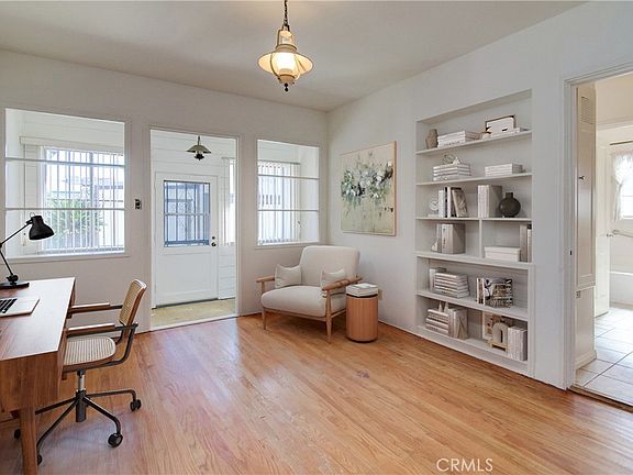Fantastic purchase opportunity on this spacious single story Leimert Park home. Fresh interior painting throughout. Great curb appeal, gorgeous original hardwood floors throughout the home, formal living room with fireplace and bay window, formal dining room, bright kitchen with newer neutral cabinets, granite countertops & backsplash, beautiful antique stove, tile floors, and sun filled eating area by the rounded custom window, primary bedroom with separate vanity area, primary bathroom with separate tub and shower, nice size bedrooms, den (built-in bookcase/display case) could be 4th bedroom, second bathroom with tub and pedestal sink, separate laundry room, enclosed patio off den, forced air heating and ceiling fans, 2 car detached garage with adjacent workshop/storage area, and extra long gated driveway. Don't miss out!