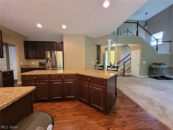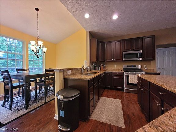 This beautiful home in Whispering Woods is just waiting for you. You are greeted with warm and neutral colors throughtout the home as you walk into the sitting/dining room and into the amazing open concept Great room, kitchen, and dining area. The open kitchen with granite counter tops, beautiful cabinets, stainless appliances, laminate flooring, and center island will be great for entertaining. The Great room features a floor to ceiling stone fireplace for cozy winter evenings. Upstairs boasts a large owners suite with a garden tub and walk in closet. The additonal bedrooms are large and have ample closet space. The lower level has a large family room, full bath, bar area, and an additonal room that could be used as a 4th bedroom or an office. The walk out basement could allow for the lower level to be used as a bonus suite. Walk out the patio doors to a private back yard that features a wooded view and wrought iron fencing.