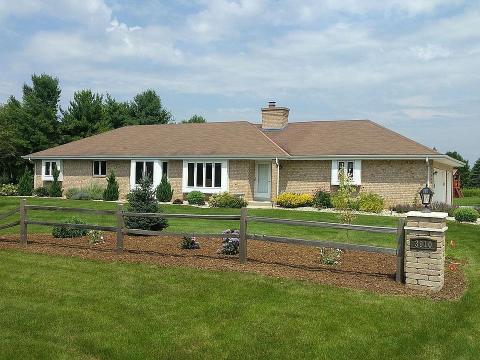ALL BRICK Ranch in impeccable condition! Custom, Quality Blt w/over 1900 SF on 1.5 AC. Features include updated KIT w/tile flrs, Corian counters, wall pantry & huge dinette w/patio drs. Formal DR w/newer HWFs, chair rail, overlooks scenery. LR w/GFP, Window seat & FrDrs to Den w/closet & Bay Window. Master BDRM w/WIC & full BA. 1st flr Util RM, Att 3 car semi-finished GAR. Finished Bsmt with bedroom, rec room, theater room, and full bath. Newer multi-zone HVAC. Tucked away in country sub off Hwy Q for EZ commuting & convenient shopping. Must See!