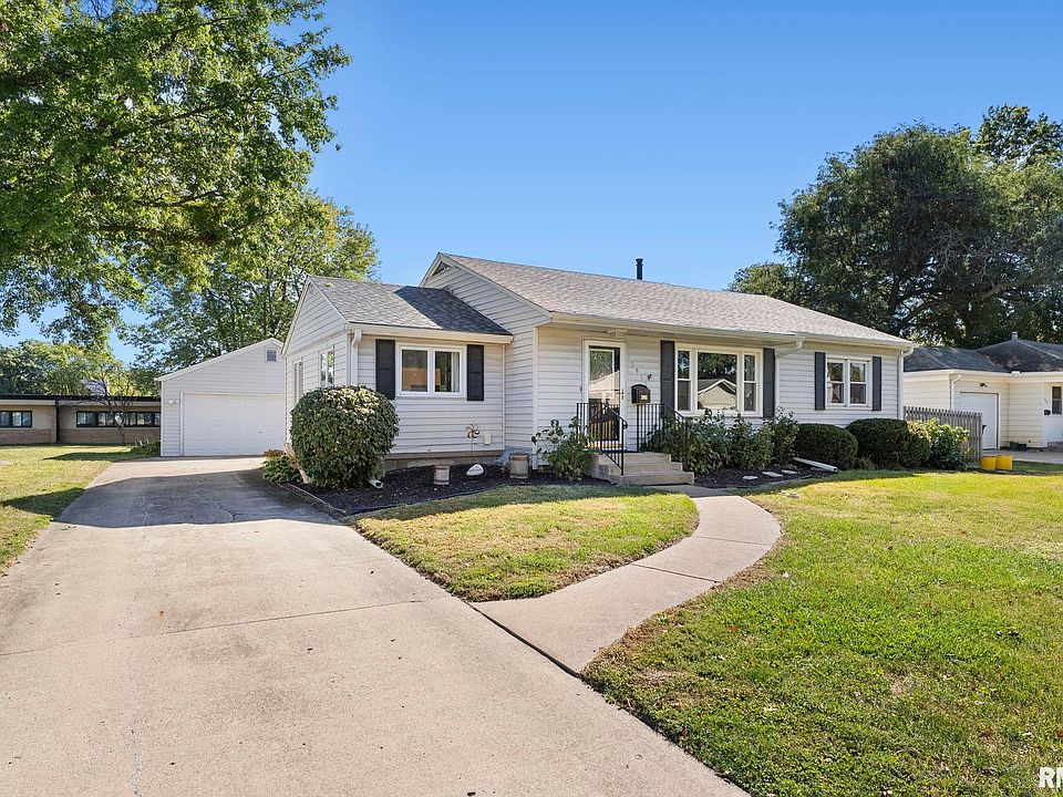 Welcome home to this beautifully maintained 2-bedroom, 1.5-bath ranch. Step inside and you'll immediately notice the warmth of the hardwood floors that flow throughout the main living room and bedrooms. The spacious living area offers plenty of natural light, creating a bright and inviting atmosphere. The completely updated kitchen features modern cabinetry, stylish countertops, and ample space for cooking and storage. Both bedrooms are generously sized, and the full bathroom has been tastefully remodeled with contemporary finishes. Downstairs, you'll find an impressive finished large living space, perfect for movie nights, gatherings, or a home office - complete with a built-in bar and convenient half bath. Step outside to a private backyard featuring a comfortable deck and a fully fenced yard, perfect for relaxing evenings outdoors. This move-in ready home blends comfort, style, and functionality - perfect for any stage of life! Updates include: 2025 gutters. 2024 roof. 2022 full kitchen renovation. 2015 furnace and a/c.