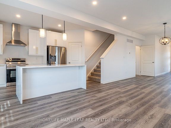 Quiet streetOpen-concept main floorPot lightsLarge patio doorsGourmet kitchenGlossy white cabinetryUpgraded granite sink