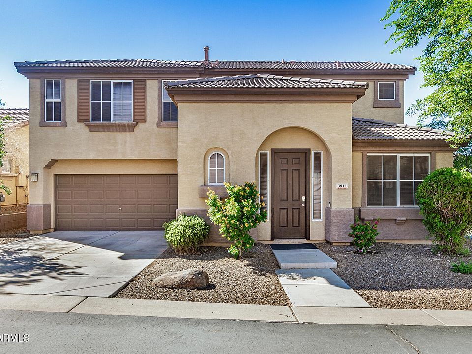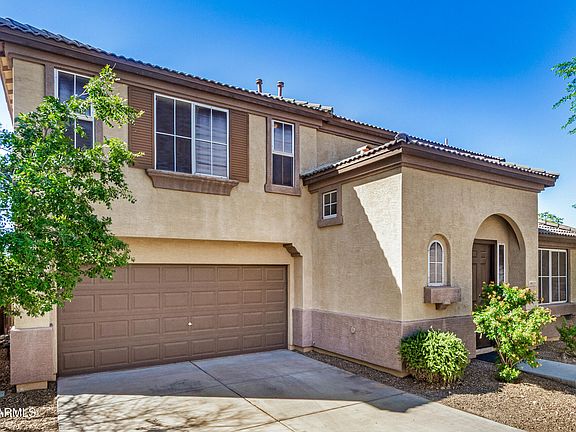 Beautiful Corner Lot Home, located at The Gardens at South Mountain! Gated Community! This home features 3 bedrooms, 2.5 bathrooms in move in ready condition! There is a community pool! Stainless steel appliances, extended 2 car garage, laundry upstairs, granite countertops, high vaulted ceilings, nice covered patio with pavers area. There is a sink in garage. Primary bedroom, comes with double sinks, private toilet room, shower and tub, with walking closet.... There is tile downstairs and carpet flooring upstairs. Kitchen island, with open floor plan to family and dining room.. Close to access to freeways, shopping, dining, schools and more.. The trails at South mountain nearby. This home sits in a cul de sac lot. check it out!