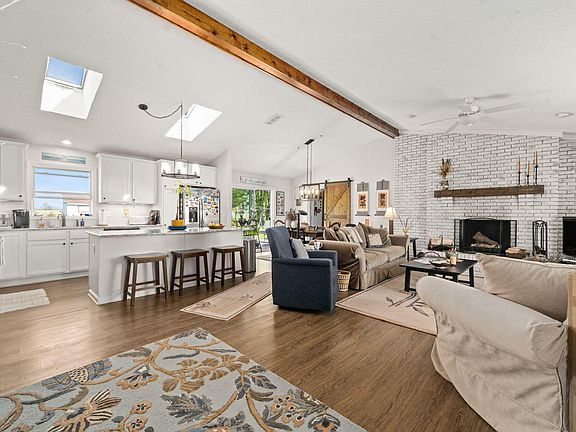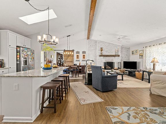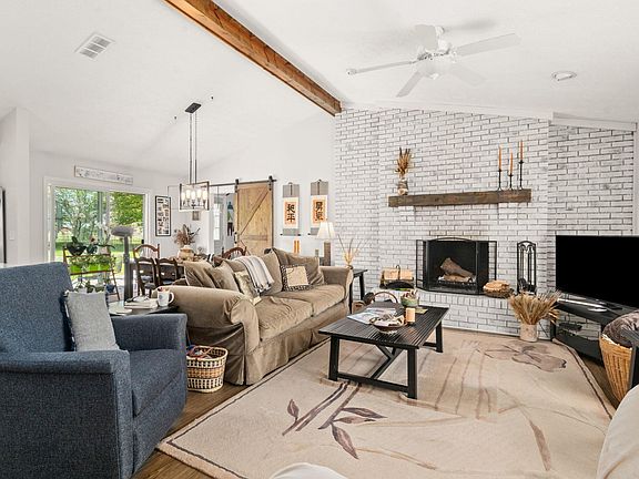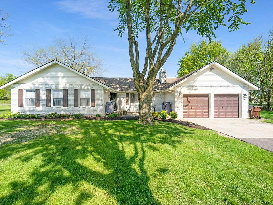 Welcome to this updated, well-kept ranch home on almost 2.5 acres—open floor plan with vaulted wood-beamed ceiling and brick wood-burning fireplace. You'll love the spacious kitchen with stainless steel appliances, a granite-top center island, and ample storage. You will find a large flex room off the attached two-car garage, currently used as a home office. A new well and pump were installed in 2019, as well as an upgraded water softener. In addition, Delaware County initiated a water line extension to Cook Road; connection to the house is available. New roof in 2020, new garage door opener installed in 2022, improved landscaping, and more. Almost 2.5 acres of land with a small barn, outbuilding, and pasture. Minutes north of New Albany.