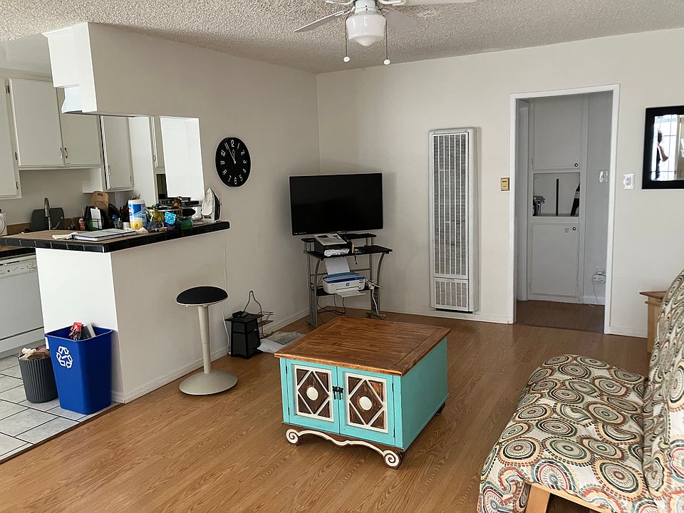 Fully furnished CO-LIVING 3 bd/2ba modest lower apartment (not condo) unit, no carpet - all tile and laminate floors, gas cooktop, dishwasher, air fryer, microwave, water/ice dispensing refrigerator, breakfast nook, window blinds and air conditioners, gas wall heaters, close to downtown Culver City, public transit & scooter/bike hubs, laundry room on-site. Fully furnished private locked bedroom CO-LIVING in a 3 bedroom lower apartment - shared with 2 other housemates. Start with 1 month; then extend in 3-6 month segments. Clean, modest & quiet apartment building on a residential street. No smoking but 4/20 friendly.
