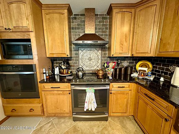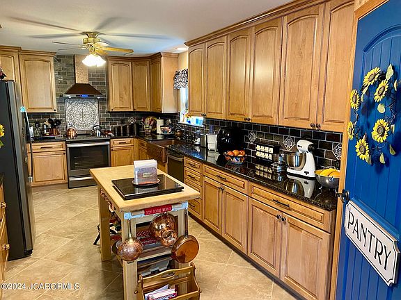 Home sweet home! This meticulously remodeled home blends contemporary aesthetics with functional design, offering a sophisticated living experience. Featuring a generous floor plan with three bedrooms and two full baths, this home provides ample space for relaxation and entertainment. The gourmet kitchen boasts custom cabinetry, a walk-in pantry, high-end appliances, and granite countertops, perfect for culinary enthusiasts and hosting gatherings. The kitchen features a copper apron front sink, a copper hood vent and a medallion from Italy behind the stove. The tile floor throughout the home gives it a natural flow. Enjoy the heated floor in the kitchen, dining room, living room and master bedroom on those cold winter days. In the bathroom you will find a hand painted sink from Mexico that matches the mirror perfectly. In the primary bedroom there is a large walk-in closet, with a primary ensuite. There is patio access to the primary bedroom as well as off the formal dining room. Enjoy outdoor living in the landscaped backyard retreat, equipped with a firepit and perfect for unwinding in privacy. This home comes with a storage shed in the backyard that has been converted into a finished shed, it has electric to the shed with a window ac unit to help keep cool during those summer days! Located in Covington Gardens Subdivision, behind the fairgrounds, the location offers convenience with a whole lot of privacy! This home sits on the back side of the subdivision with a large hayfield behind, feels like you're living in the country right inside of town! Renovated with attention to detail and quality craftsmanship, this home exemplifies pride of ownership and timeless appeal, and is move in ready!