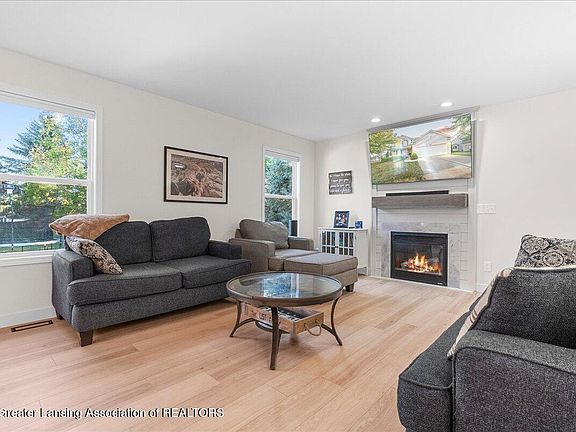 Step inside this stunning Holt home where every detail has been upgraded with care and quality. Featuring high-end finishes throughout, this residence stands out as one of the most updated homes in the neighborhood. The kitchen shines with 2024 quartz countertops and newer appliances, while the main level showcases fresh flooring, paint, and fixtures. Enjoy the convenience of a first-floor laundry with a sink and pantry, and unwind in the open living room centered around a cozy gas fireplace. Outside, you'll find Trex decking, a newer fenced yard, and an insulated shed with electricity. The finished basement offers egress windows for extra living space, and the expansive primary suite includes double sinks and a walk-in closet. With a new roof in 2021, this move-in ready home is truly mode