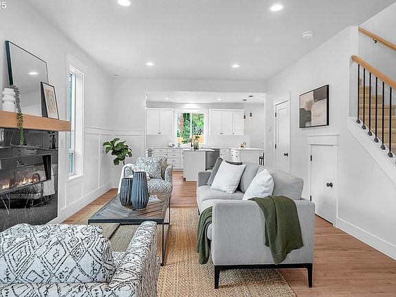 Gorgeous Woodstock new construction w/ luxury finishes, contemporary and open layout. The main level boasts high ceilings and custom millwork including beautifully designed built-in shelves, storage, and wainscoting. Expansive windows bathe the home in natural light, with views of greenery and open sky. The fireplace anchors the living area, and a convenient half bathroom is perfect for entertaining guests or relaxed everyday living. The airy, bright kitchen features quartz countertops, an island with eating bar, top quality appliances, and extensive cabinet space including a convenient pantry. Upstairs, the luxurious primary suite features an inset ceiling, a sizable walk-in closet, and a spa-inspired bathroom with a walk-in shower, soaking tub, and dual sinks. Two more spacious bedrooms, a gorgeous hall bathroom, and a laundry room with storage round out the upper floor. The beautifully landscaped backyard includes a covered patio for year-round outdoor enjoyment. The oversized attached garage is ideal for rainy Portland days, and there is plenty of parking on the quiet, wide street. Just outside your door, explore the charm of Woodstock, known for its community vibe, pet-friendly park, great local eateries, and cozy spots to grab a drink. You’re mere blocks to the Woodstock, SE Division St, and the Hawthorne District. Enjoy easy access to Trader Joes, New two Seasons Markets, and the beautiful open space of Woodstock Park. This home offers the ideal blend of traditional elegance, modern convenience, and a location that puts all you love about Portland right at your door.
