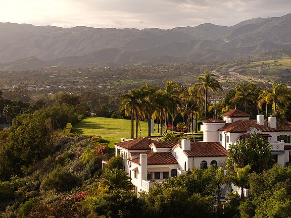 Experience the pinnacle of Santa Barbara living at Villa Ladera, a stunning hilltop estate, designed by famed Spanish Colonial architect Henry Lenny, nestled within the exclusive Hope Ranch community. Comprising two separate legal private gated parcels spanning 7.59 acres this meticulously renovated Spanish Colonial Revival-style home combines timeless elegance with modern luxury and elevated style. With sweeping panoramic views of the mountains, ocean, and La Cumbre Country Club fairways, the property offers an idyllic retreat that defines resort-style living. Recently renovated and designed by notable New York-based designer Noa Santos, the spacious residence encompasses over 6,000 square feet and features 4 bedrooms - each with a private bath, in-law suite, library, and a 3-car garage. The romantic primary suite boasts ocean and mountain views from the balcony, a fireplace, his and hers closets, a steam shower and radiant floor heat for ultimate luxury and relaxation. Designed for both casual entertaining and fine dining, the expansive kitchen boasts custom finishes like Calcutta marble, handmade Tunisian tiles, and premium dual La Cornue ranges. The home's chic designer lighting fixtures by Rose Uniacke and In Common With and carefully crafted details enhance its unique character, offering a sense of timeless sophistication. Throughout the home you will find extensive custom millwork providing ample and beautiful storage spaces.