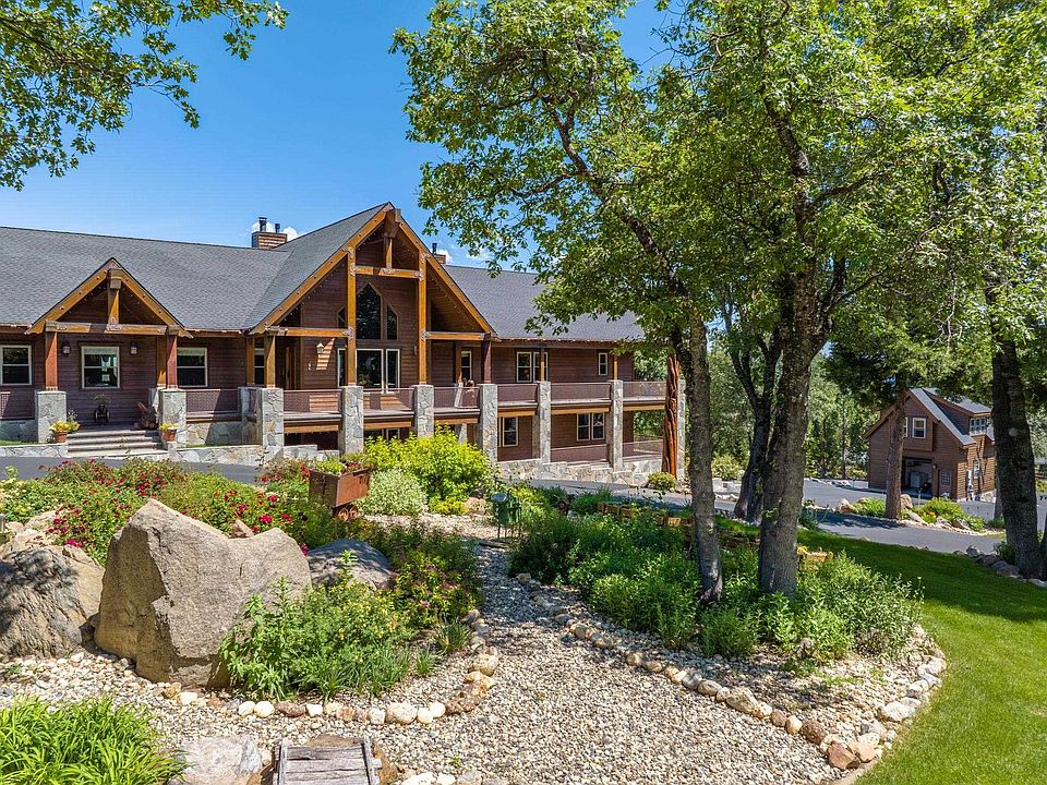 Nestled on 10 pristine acres with panoramic views and direct access to endless outdoor recreation, this extraordinary mountain estate is a testament to passion, precision, and custom design. A true retreat, this home combines timeless elegance, modern systems, and unparalleled serenity, offering the perfect blend of functionality and beauty for a family, collector, or entertainer. Every detail of this custom-built property has been thoughtfully crafted—from hand-selected materials sourced across the West to unique artisan touches like pinecone door handles, hand-painted sinks, custom woodwork, and stained glass. With only one original wall retained from the previous structure, the home was meticulously reimagined and rebuilt over several years, creating a legacy property that stands apart. Designed to entertain, the grand chef’s kitchen features Viking appliances, an impressive island with seating for eight, and custom Savage cabinetry throughout. Outdoor living spaces, including a pizza oven, outdoor fireplace, fire pit, and a man-made river with waterfalls, elevate the alpine lifestyle experience. The expansive grounds include multiple garages, workshops, and a guest house, providing ample storage and utility. Energy efficiency is ensured with a solar system, while fire safety is prioritized with a 1,200-gallon tank, hydrants, and community Firewise certification. The property is backed up with a 48k Generac generator. A private road leads to trails for hiking, snowmobiling, and ATV adventures, offering easy access to endless outdoor recreation.