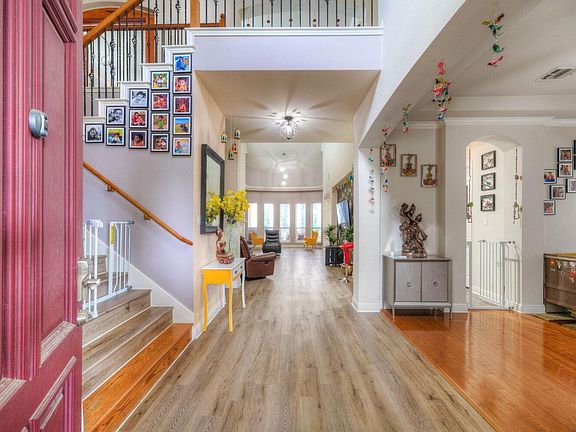 Bright open floor plan with tray ceilings, crown molding, and recessed lighting & located on a quiet cul-de-sac. This home has an abundance of storage throughout & great hill country views from the back deck. Spacious kitchen w/ granite countertops, breakfast bar w/42" cabinets, decorative tile backsplash, pull-out drawers in lower cabinets & recessed lighting. Fantastic upstairs bedroom/office/media room area with French doors, walk-in closet, lighted ceiling fan & wall of windows.